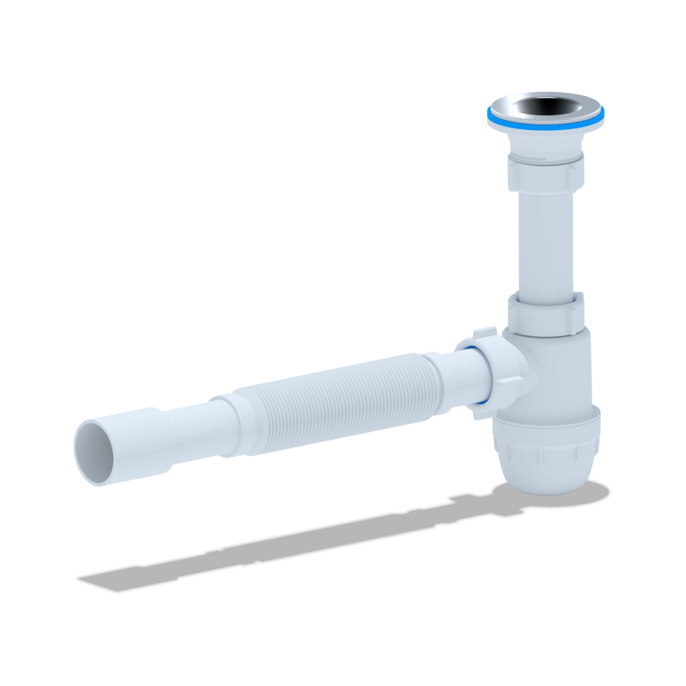 - ✓ Компактная конструкция позволяет устанавливать сифон даже в условиях ограниченного пространства под раковиной, что особенно актуально для небольших ванных комнат и кухонь.