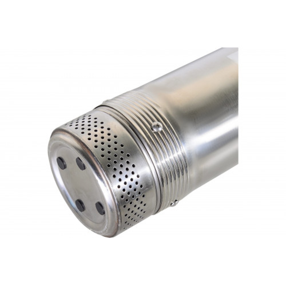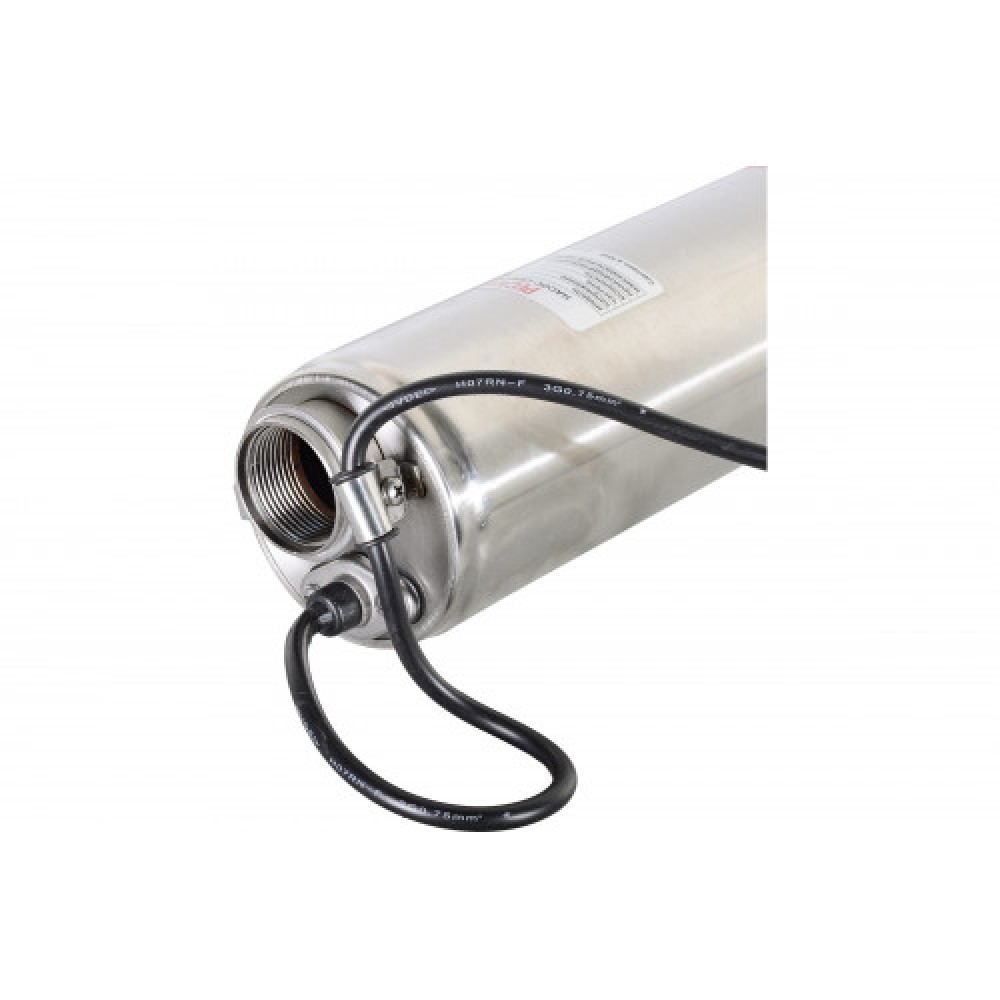 Корпус из нержавеющей стали выполнен в виде цилиндра диаметром 100 мм (4"), рассчитанного на погружную установку с подключением через выход 1,25".