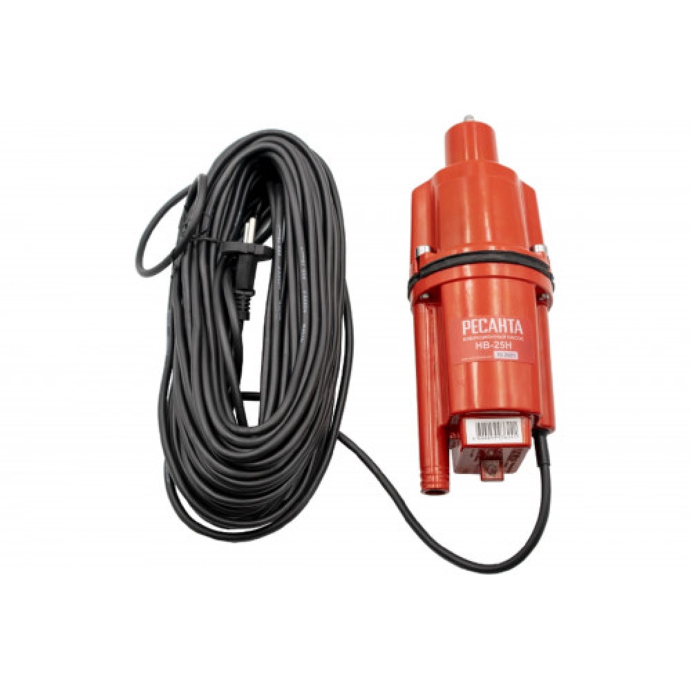 Вибрационный насос Ресанта НВ-25Н полезной мощностью 300 Вт, максимальной высотой подъема воды 75 м и производительностью до 22 л/мин предназначен для подачи воды из скважин (внутренний диаметр от 110 мм и более), а также из колодцев, резервуаров и открытых водоемов.