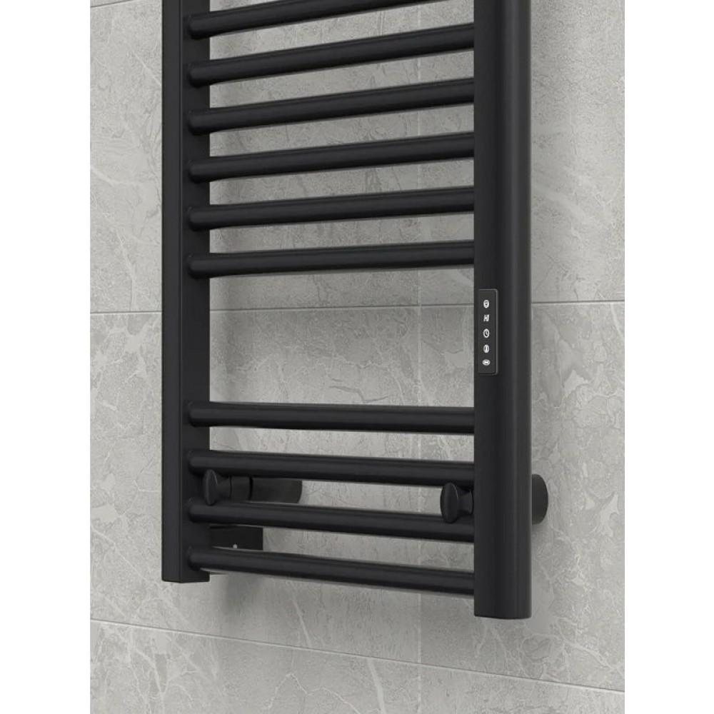 Электрический полотенцесушитель выполнен в современном дизайне и представлен в цвете "Чёрный янтарь". Устройство предназначено для быстрого и равномерного прогрева ванной комнаты, сушки полотенец и белья. Подходит для любых типов помещений, включая квартиры и частные дома.
