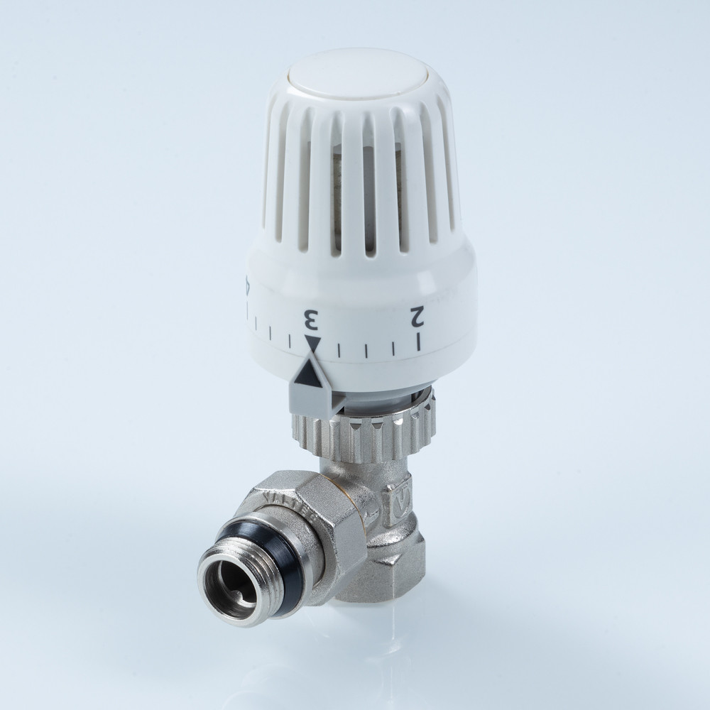 Комплект углового термостатического клапана (радиаторный терморегулятор). Автоматически поддерживает температуру воздуха (точность – до 1 °С). Максимальная рабочая температура – 110 °С; номинальное давление – 10 бар. Соответствует требованиям ГОСТ 30815, EN215 (часть 1). Ремонтопригоден. Применим в зданиях любого назначения. Наличие полусгона обеспечивает установку, демонтаж термостатического клапана без разборки трубопровода. Присоединительная резьба радиаторного терморегулятора – внутренняя/наружная. Средний полный строк службы – 30 лет.