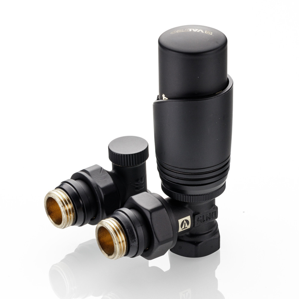 Комплект терморегулирующего оборудования для радиатора угловой 1/2 ", черный